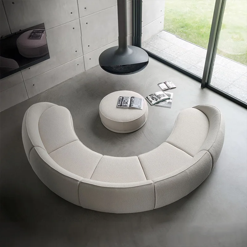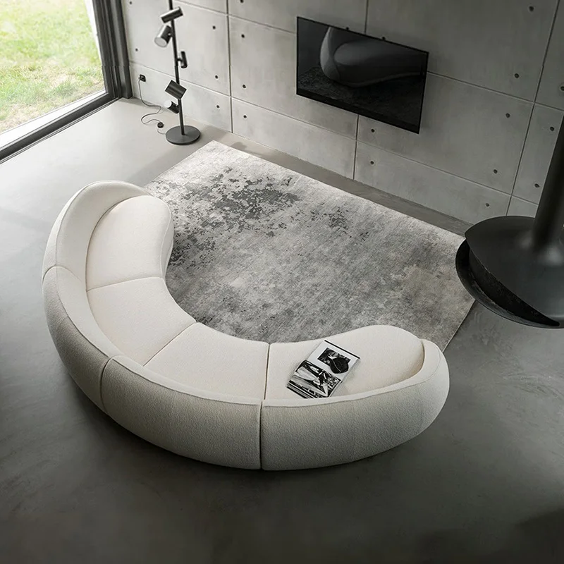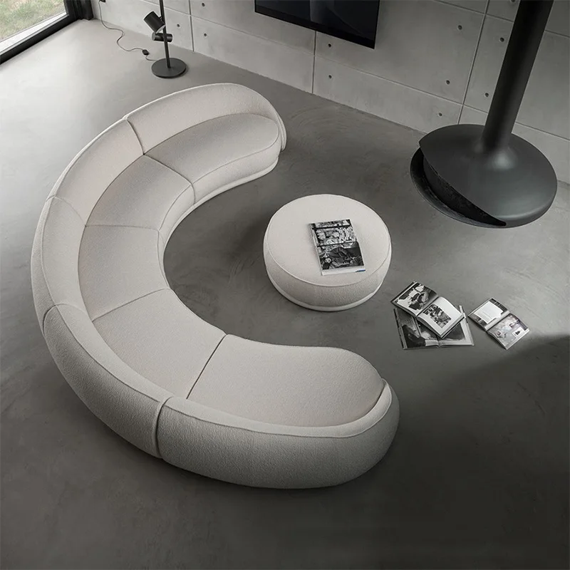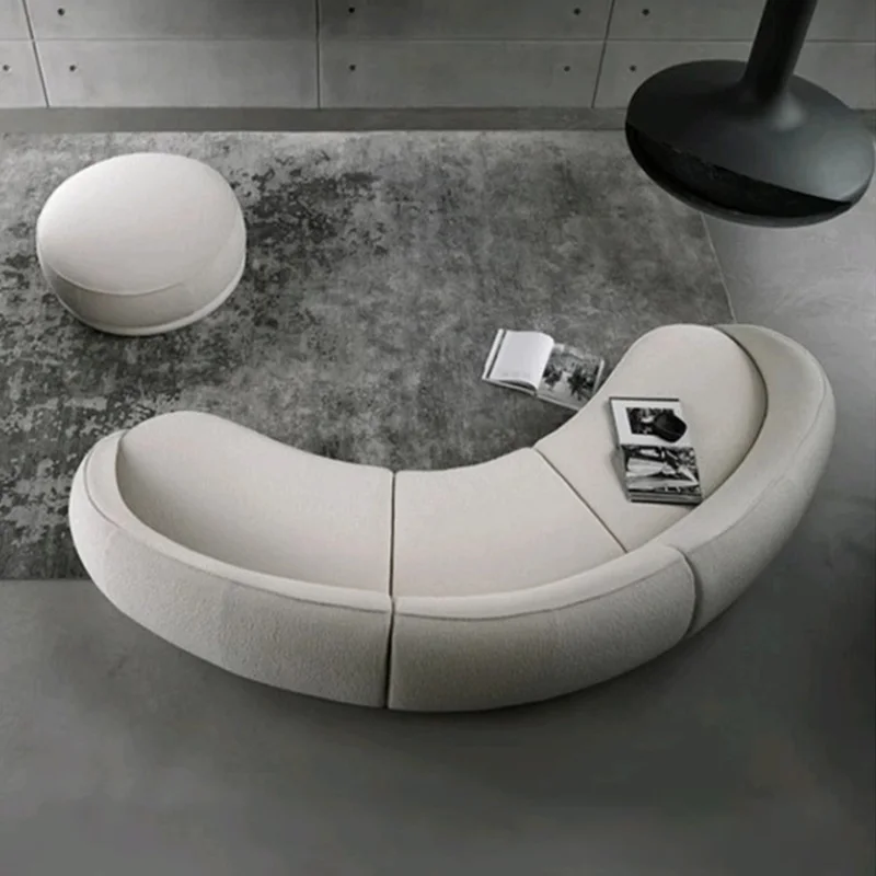Luxury Nordic Lambswool Sturdy Sofa Modern Curved Corner Living Room Sofas Stylish Comfortable White Large Couch for Home Office Hotel Furniture